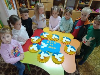 одного. Дошкільнята виготовляли емблеми, які символізують мир, також виконали